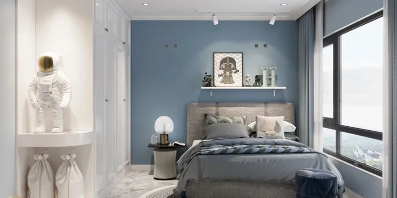 Thiết kế nội thất căn hộ 2 phòng ngủ Solie – Phong cách cổ điển mang đến một không gian phòng ngủ với tone màu trắng chủ đạo, kết hợp cùng hệ thống đèn điện tạo nên không gian ấm áp. Việc sử dụng chất liệu đá vân xám trong việc bố trí không gian phòng ngủ vừa đem lại cảm giác thân thiện vừa tạo cảm giác ấm cúng, nhẹ nhàng cho người sử dụng.